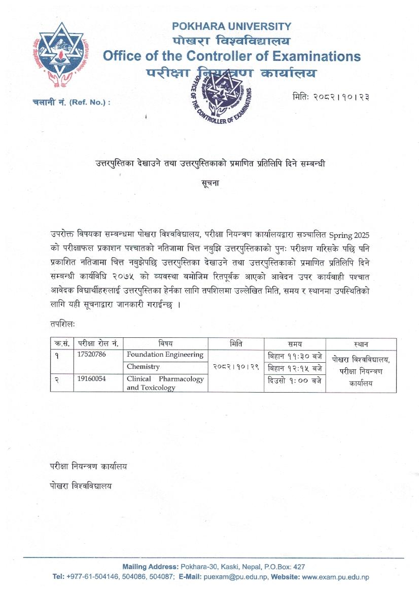 पोखरा विश्वविद्यालयको २१ औं दीक्षान्त समारोहमा भाग लिने विद्यार्थीहरुले ट्रान्सक्रिप्टको लागि आवेदन फाराम भर्ने म्याद थप सम्बन्धी सूचना !