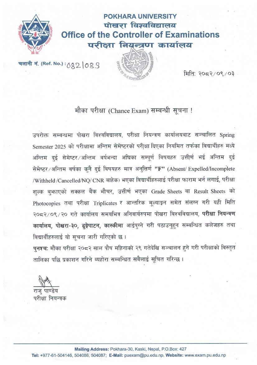 मौका परिक्षा (Chance Exam) सम्बन्धी सूचना !